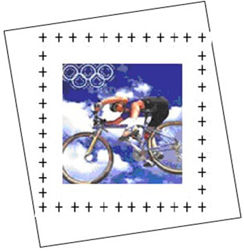 圖1 正面的圖,外黑框為打印布,+字符為標識符,彩色圖為需要打印的圖片