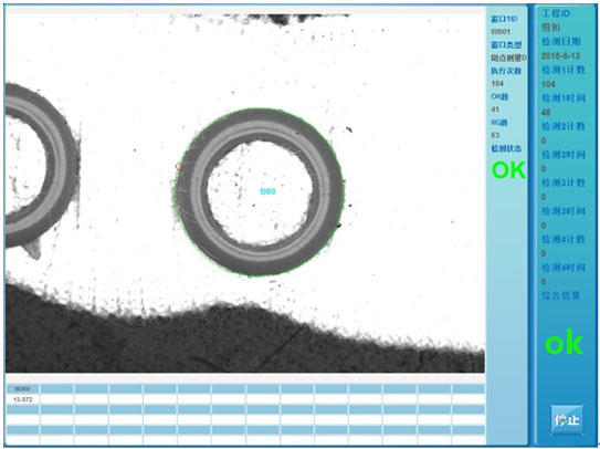 系統采用進口高分辨率工業相機,可以快速獲取圖像,通過圖像識別、分析和計算,實時偵測紐扣生產中是否出現不良品,并輸出相應檢測信號提示,以便于對有缺陷的產品進行處理。