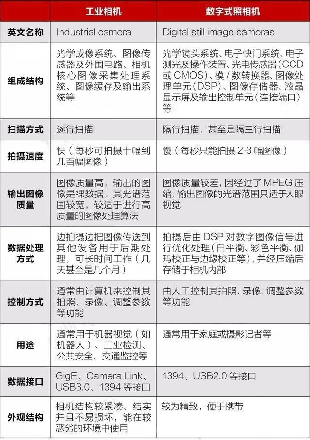 工業相機與普通數字式相機的主要區別