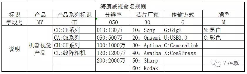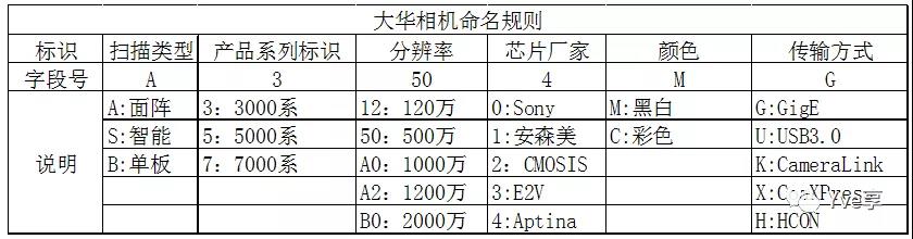(其它品牌相機請參照官方選型手冊,一般都有自己的命名規則來方便記憶和區分,不在一一列舉)